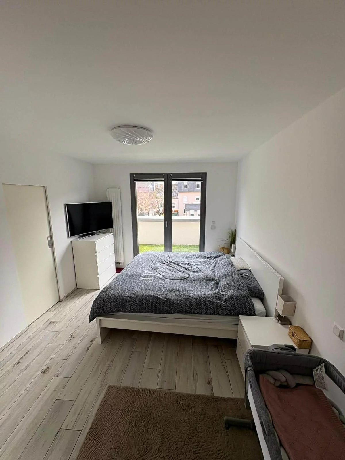 - suite parental: chambre à coucher & accès balcon (7,03 m2) & salle de douche (WC, lavabo avec armoire mural, douche italienne) & dressing (placard intégré haut de gamme)
