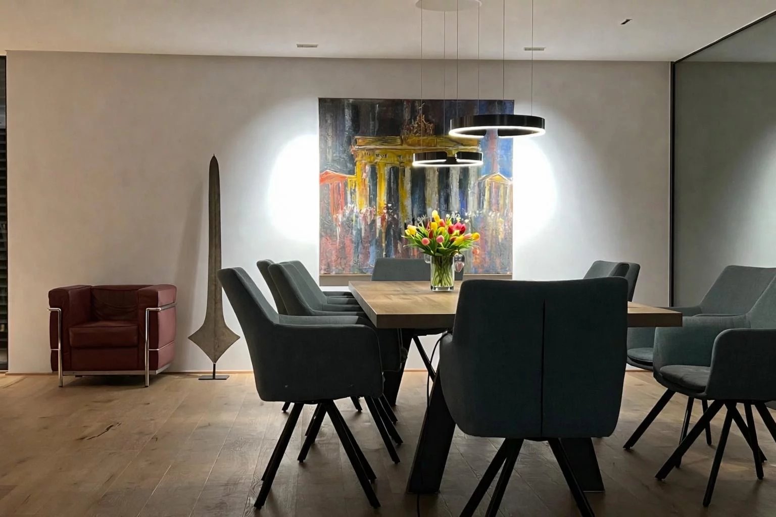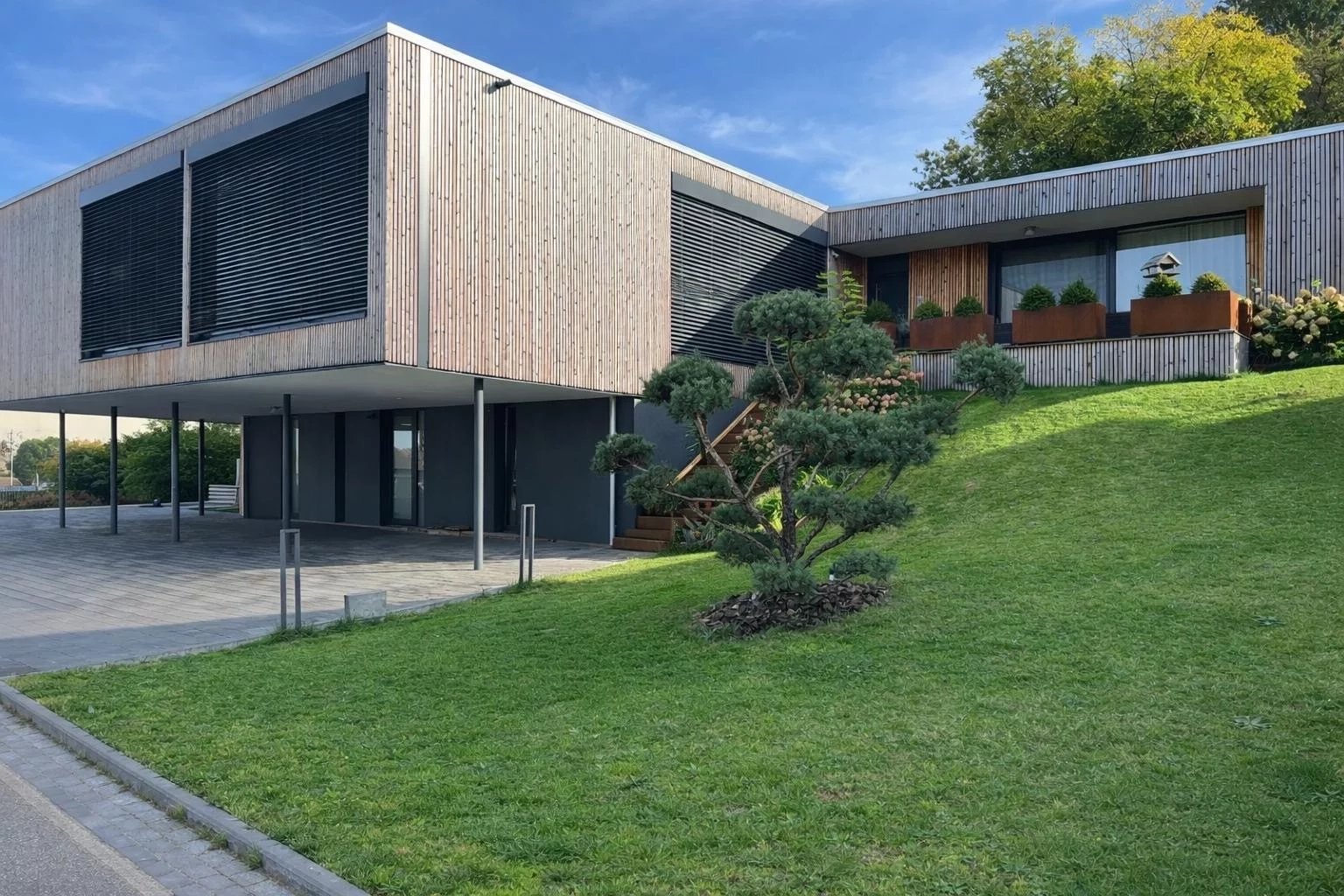 Cette maison d'architecte exceptionnelle allie architecture moderne, construction durable et confort de vie maximal. Construite en 2021/2022, cette maison individuelle a été réalisée en béton massif au sous-sol et en ossature bois biologique de haute qualité avec isolation par insufflation à l'étage.