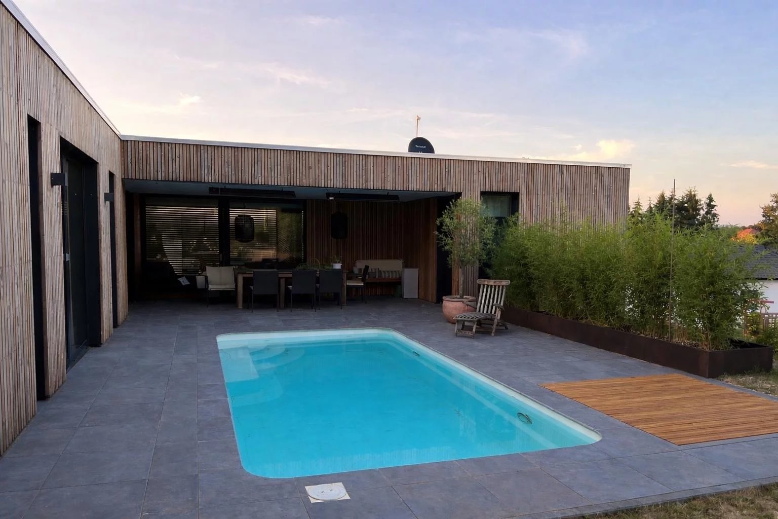 - Piscine extérieure chauffée en PRV (6,40 m × 3,20 m).